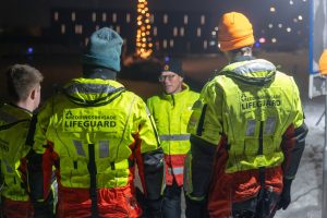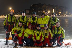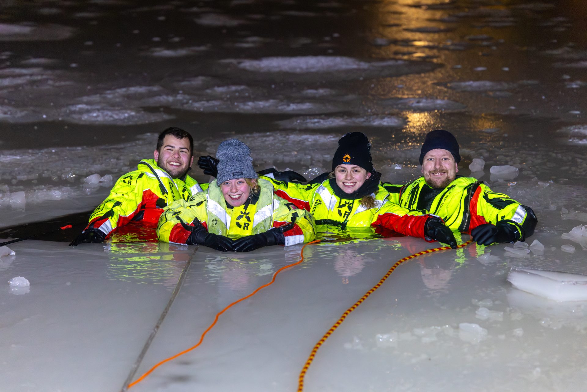DRACHTEN – Terwijl de meeste inwoners van Drachten de warmte van de kachel opzochten, sprongen de vrijwilligers van Reddingsbrigade Drachten afgelopen zondagavond vrijwillig het ijskoude water in.