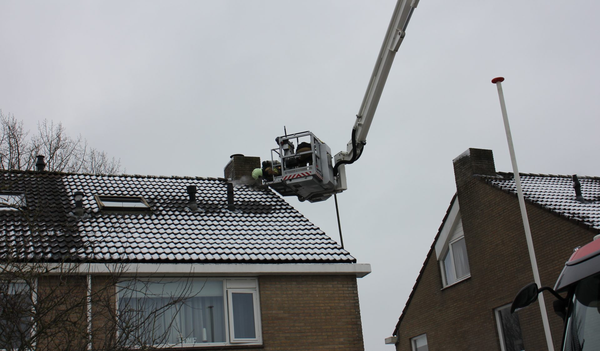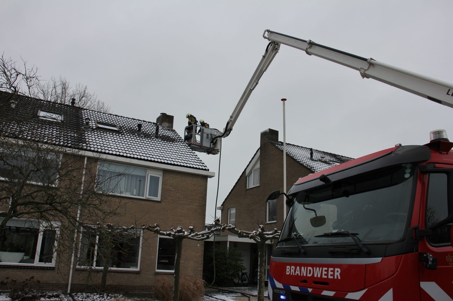 De brandweer ging rond kwart voor een met spoed ter plaatse met een tankautospuit en een hoogwerker. De brand in de schoorsteen zorgde voor rookontwikkeling in een deel van de woning.