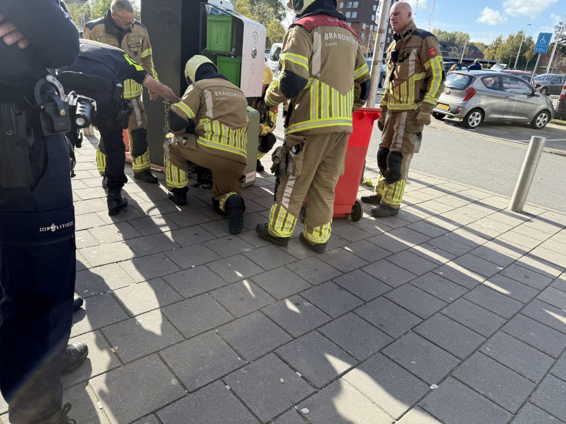 De situatie was snel onder controle nadat de bak naar buiten was gebracht.