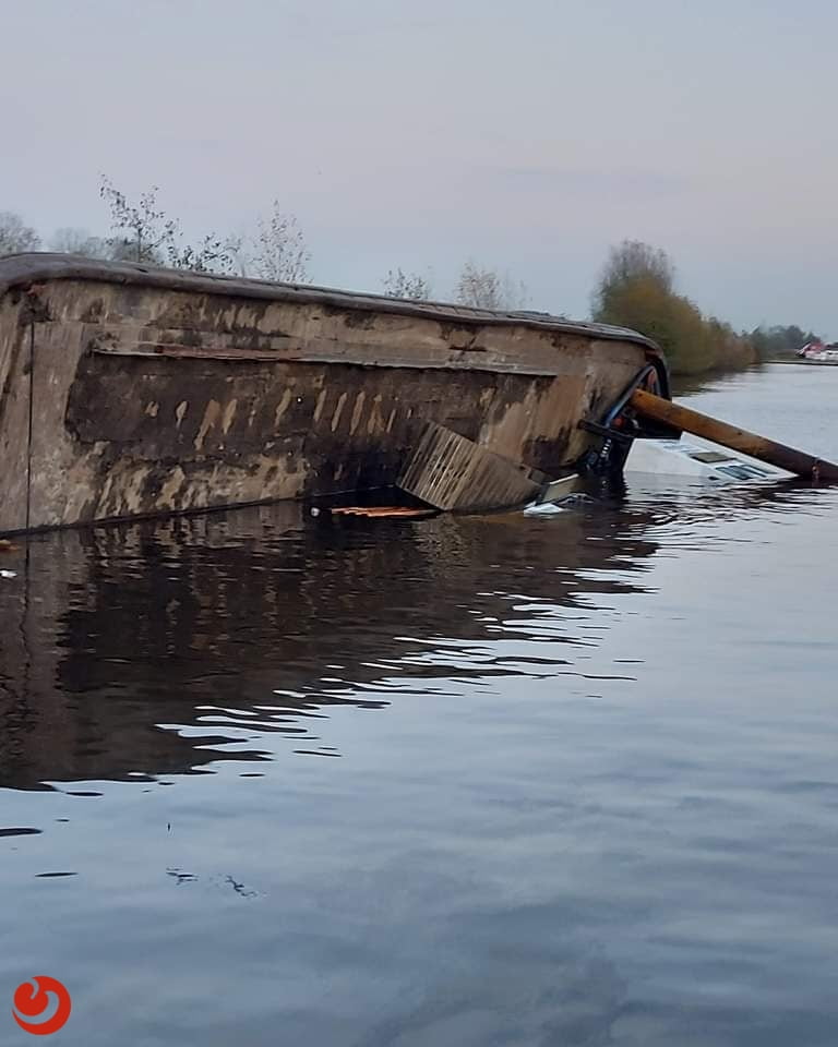 Eenmaal op locatie bleek hier een schip te zijn gekapseisd. De brandweer van Sneek kwam ter plaatse met olieschermen. Met de boot van Lemmer konden ze in het water worden geplaatst, zodat de lekkende vloeistoffen niet verder het water op konden drijven.