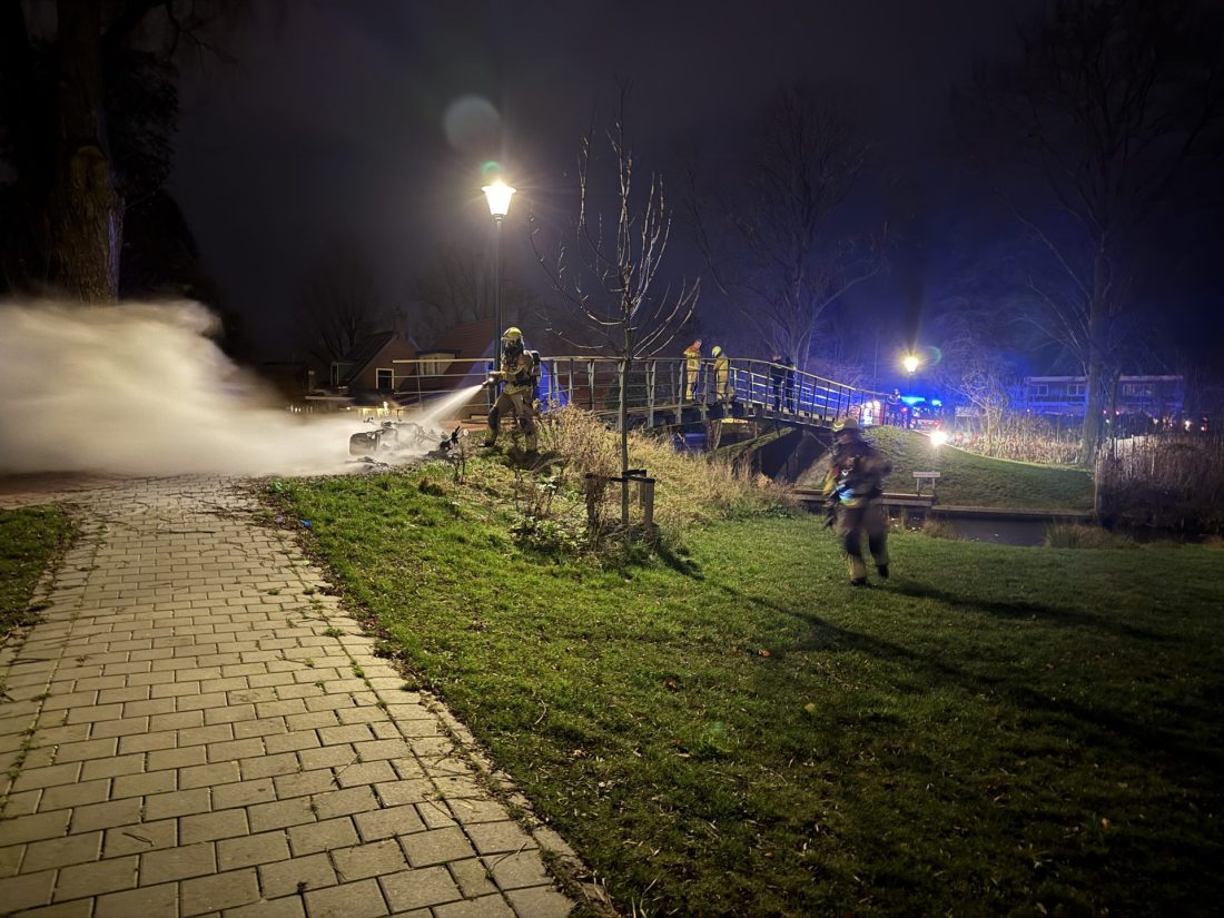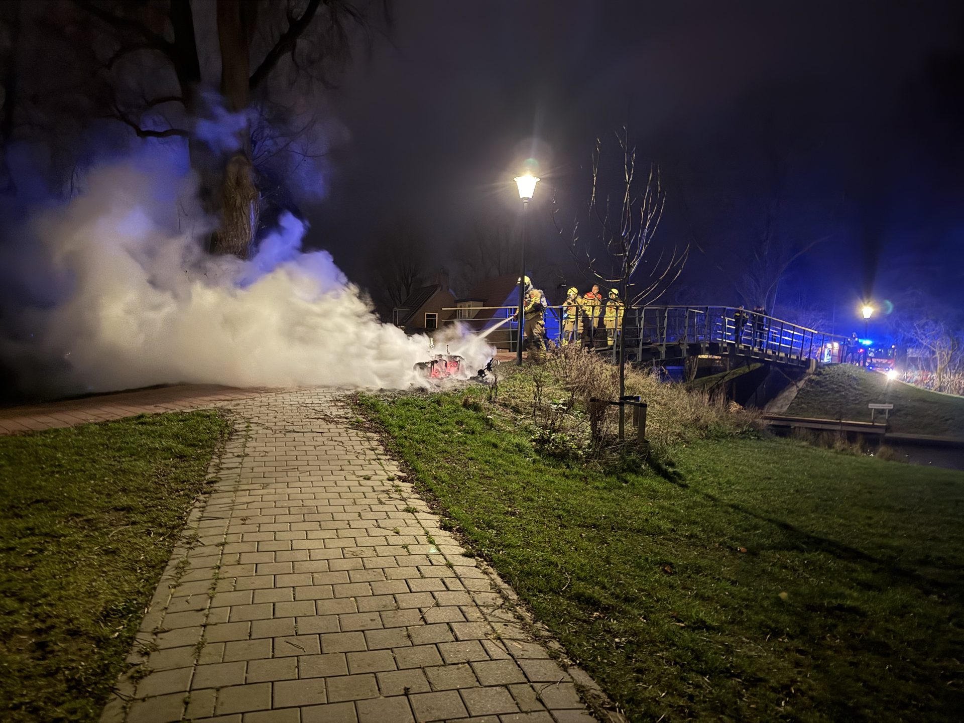 LEEUWARDEN – Eén scooter is dinsdagmiddag in vlammen opgegaan bij het bruggetje naar Snakkerburen.