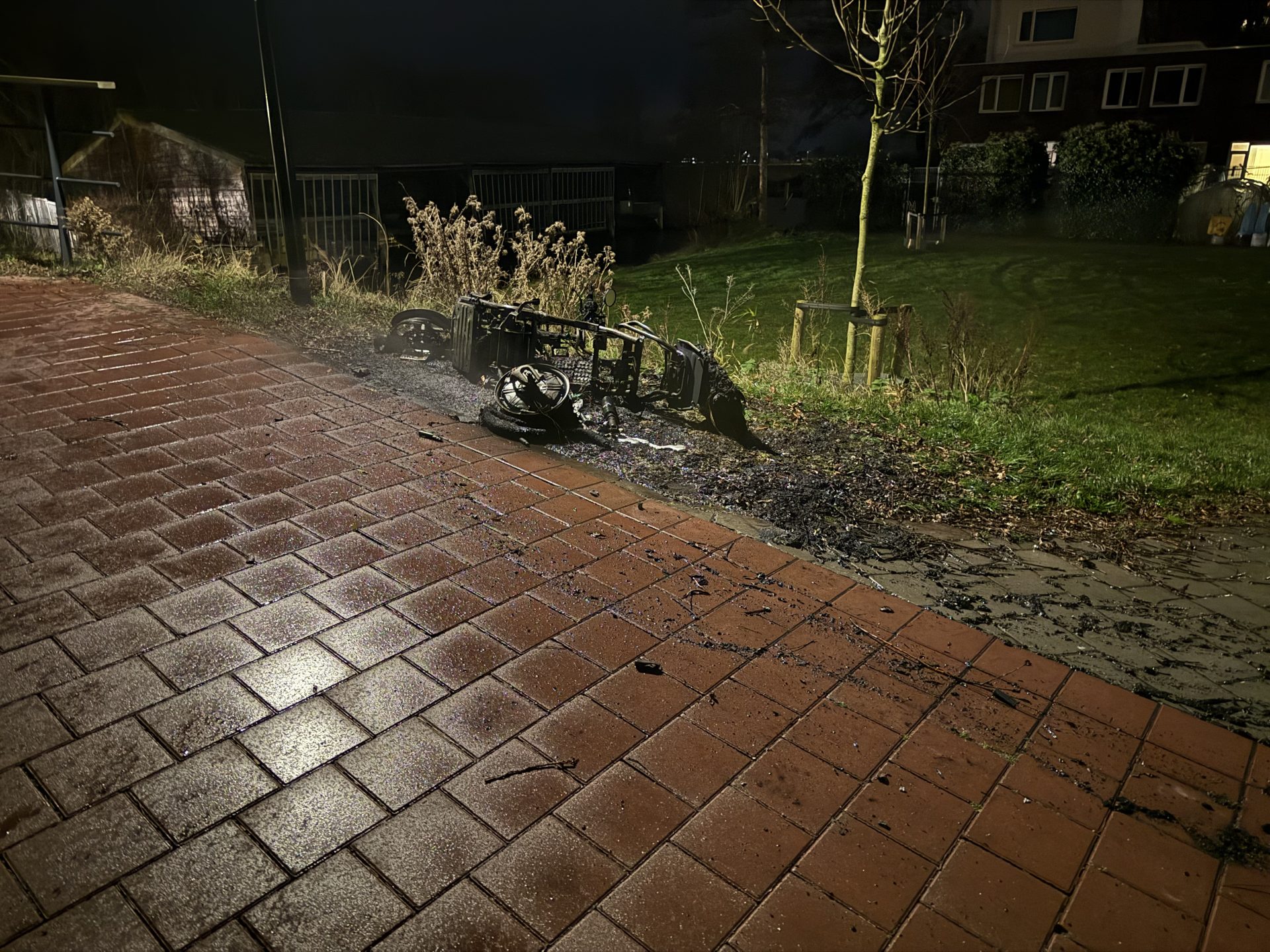 De brandweer kon de scooter die in lichterlaaie stond, snel blussen. Er bleef weinig van over. De ter plaatse gekomen politie heeft een onderzoek gedaan naar de toedracht van de brand.