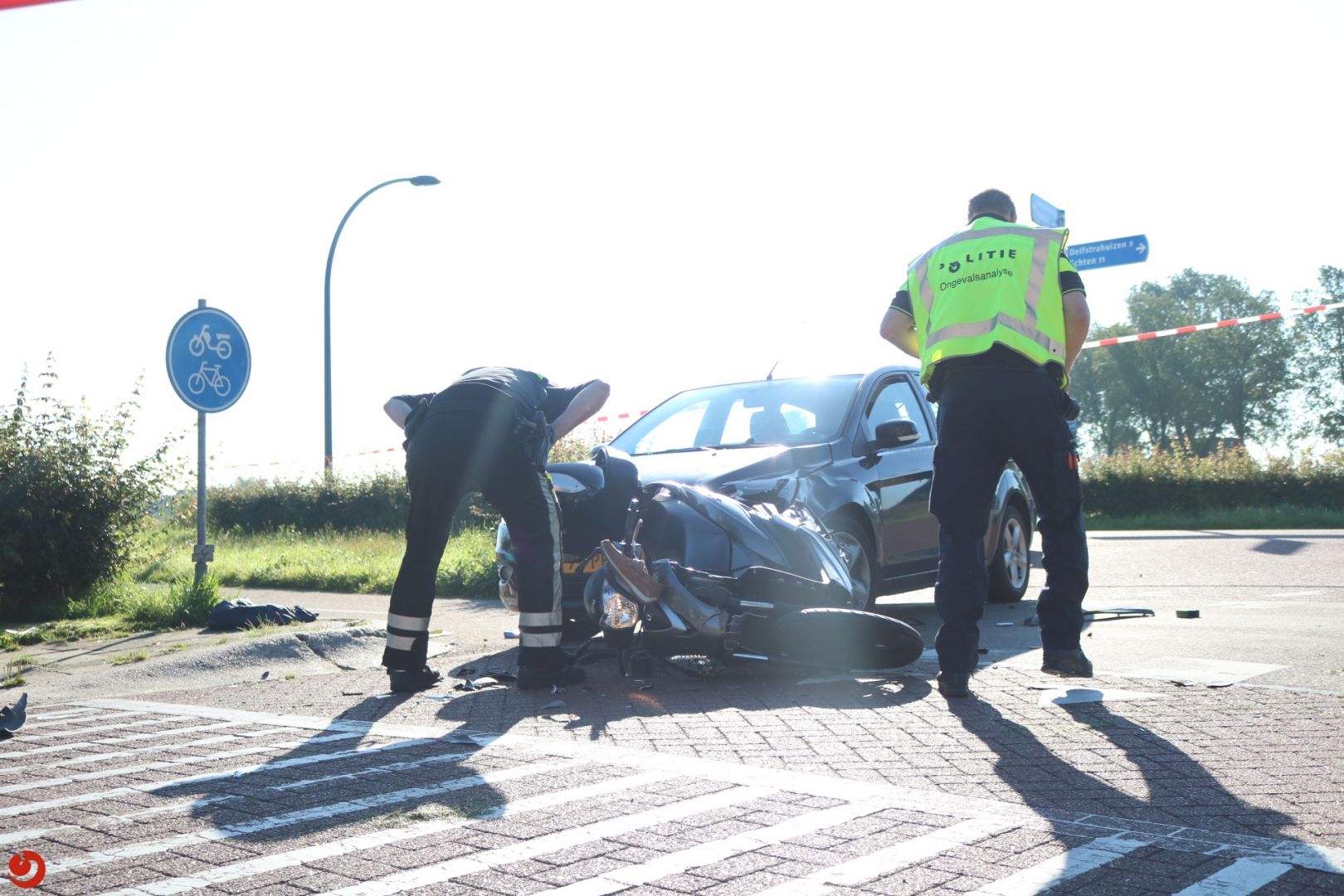 De bestuurder van de scooter is met onbekende verwondingen naar het ziekenhuis gebracht.