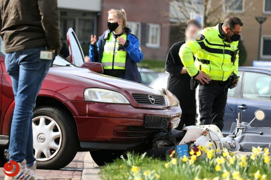 Een scooterrijder is door nog onbekende oorzaak in botsing gekomen met automobilist. De scooterrijder kwam hierbij ten val en raakte gewond. De ambulance en politie kwamen met spoed ter plaatse om eerste hulp verlenen aan het slachtoffer. De vrouw is na behandeling overgebracht naar het ziekenhuis. De auto is opgehaald door een bergingsbedrijf.