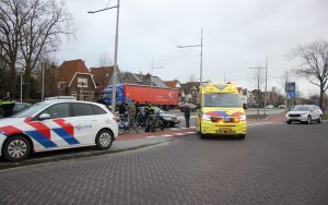 Een scooterrijder die over het fietspad reed ter hoogte van de Karwei, kwam in botsing met een auto die het fietspad kruiste om naar of van het parkeerterrein te gaan. De scooter kwam zodanig ten val dat beide opzittenden gewond raakten.
