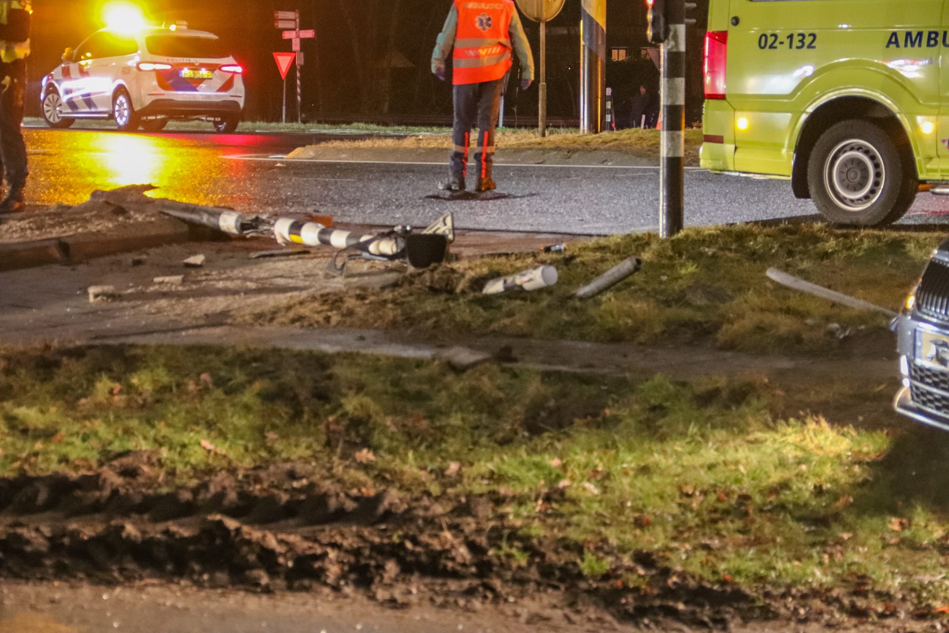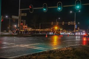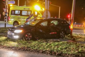 Omstreeks half zeven werden de hulpdiensten opgeroepen voor het ongeval op het kruispunt bij de E-10, meerdere politie-eenheden en twee ambulances kwamen ter plaatse. Twee voertuigen waren in botsing gekomen 1 daarvan werd in de zijkant geraakt en kwam in de berm tot stilstand hierbij werd ook een verkeerslichtpaal uit de grond gereden. De slachtoffers van de twee auto’s zijn nagekeken op verwondingen in de ambulances.