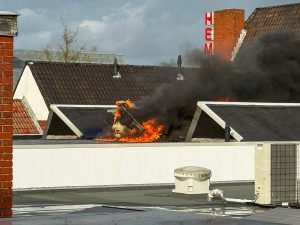 Drachten- De brandweer van Drachten en Beetsterzwaag zijn dinsdagmiddag gealarmeerd voor een brand op het dak bij de Hema.