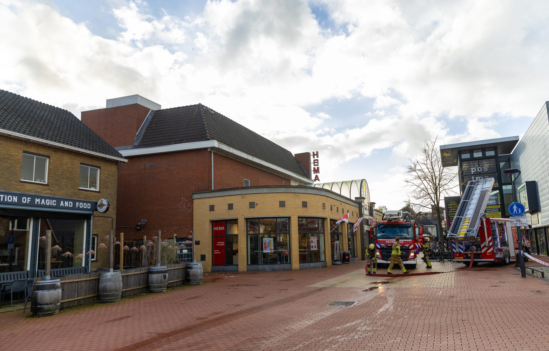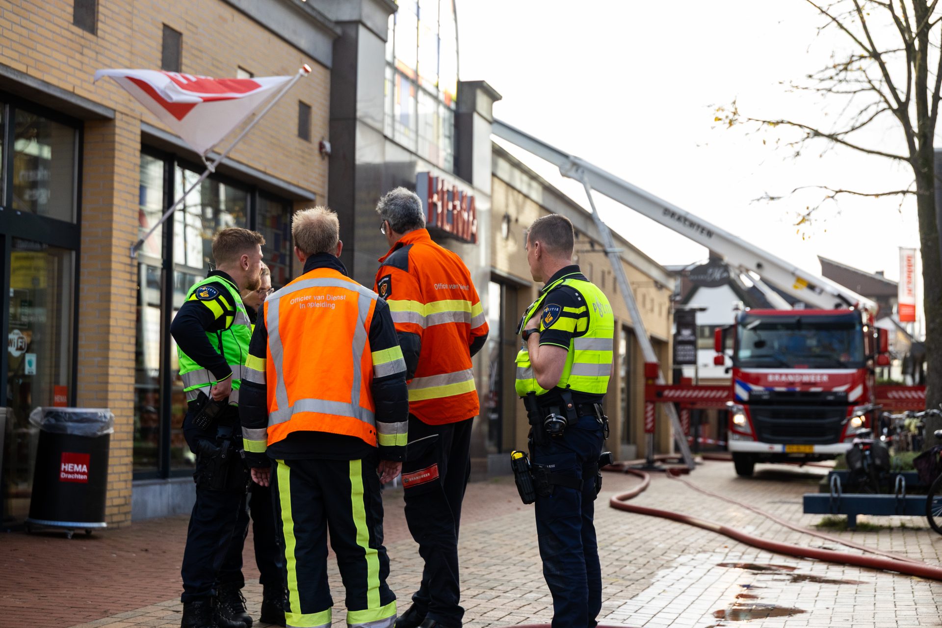 Het personeel ontruimde de winkel en alarmeerde de hulpdiensten. Tijdens dak werkzaamheden ontstond de brand op het dak van de Hema. Omdat er veel rook vrij kwam werd er opgeschaald naar middelbrand.