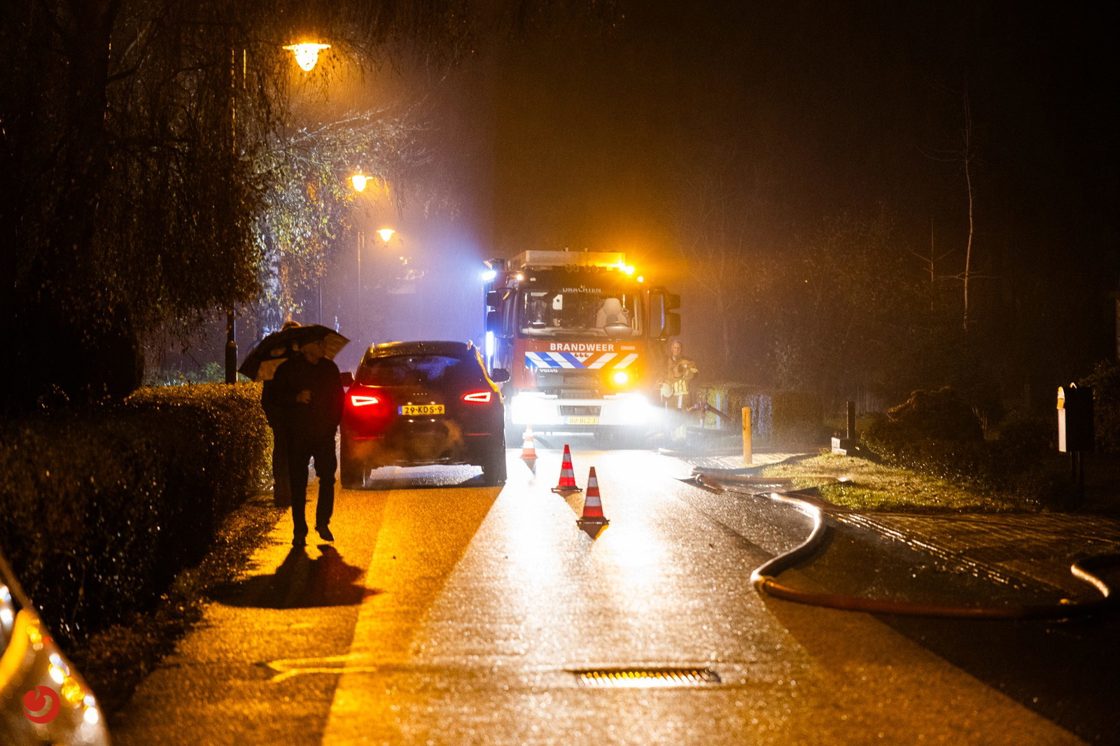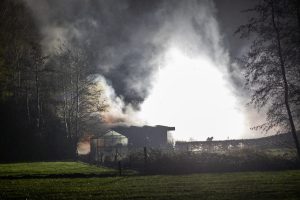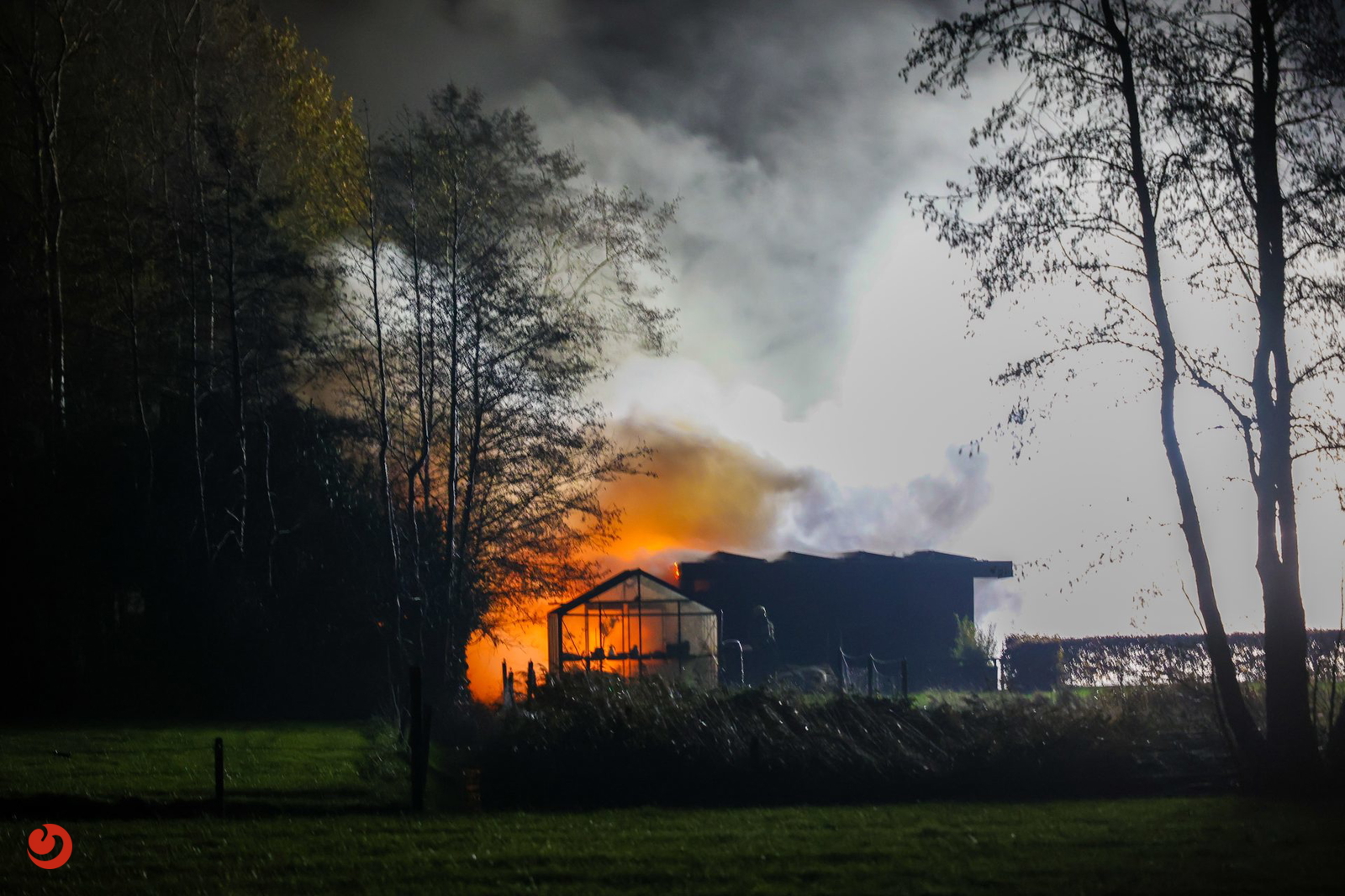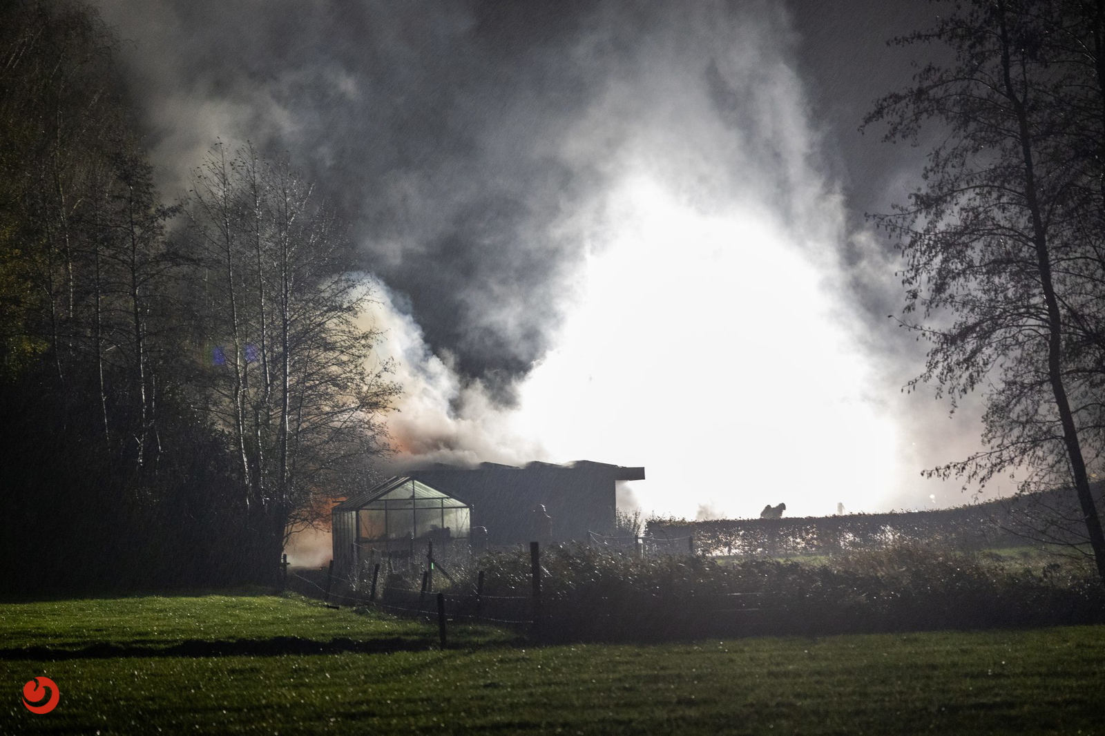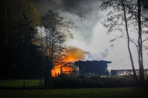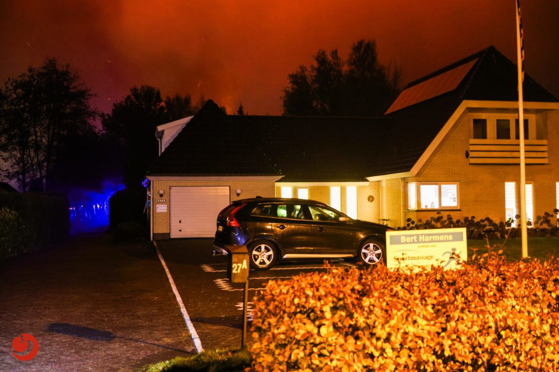 Eenmaal ter plaatse stond er een grote schuur achter de woning in brand. In verband met waterwinning werd er opgeschaald naar middelbrand. Volgens omstanders waren er diverse explosies te horen en te zien.