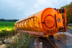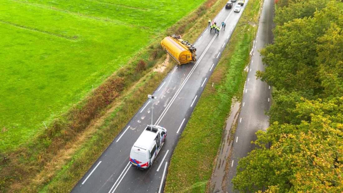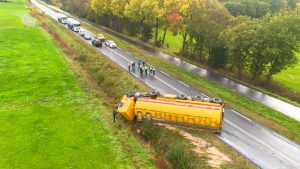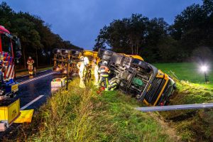 OLDEBERKOOP – Donderdagochtend rond 07.30 uur is op de Stellingenweg (N351) bij Oldeberkoop een vrachtwagen van de weg geraakt. De chauffeur is ernstig gewond geraakt.