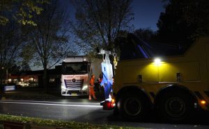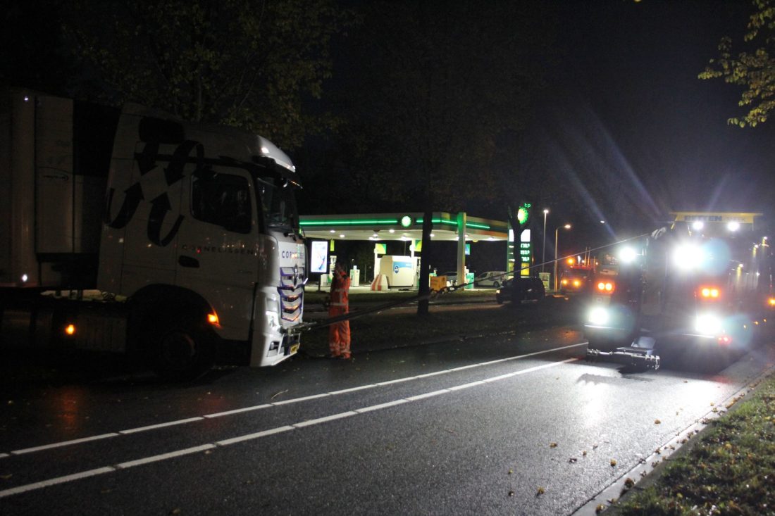 De vrachtwagen die bij het BP Tankstation wegkwam wou vanwege de wegwerkzaamheden via de berm keren en kwam daarbij vast te zitten. De ventweg werd hierdoor volledig geblokkeerd, evenals de uitrit van het tankstation. Automobilisten moesten na het tanken keren op het terrein.