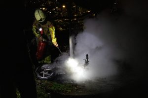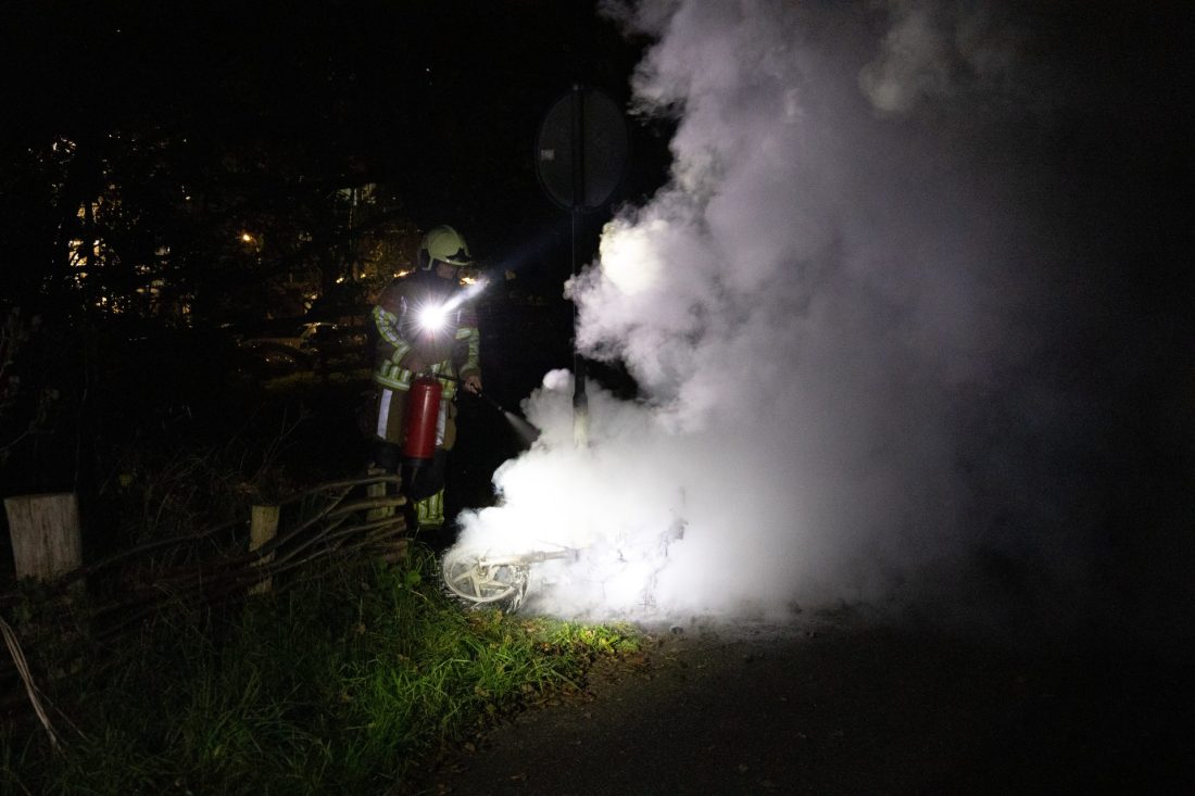 Met de brandblusser konden de meeste vlammen snel worden gedoofd. Met een straal water werden de smeulende resten afgeblust. De afgelopen weken gaan er regelmatig scooters in vlammen op in Leeuwarden.